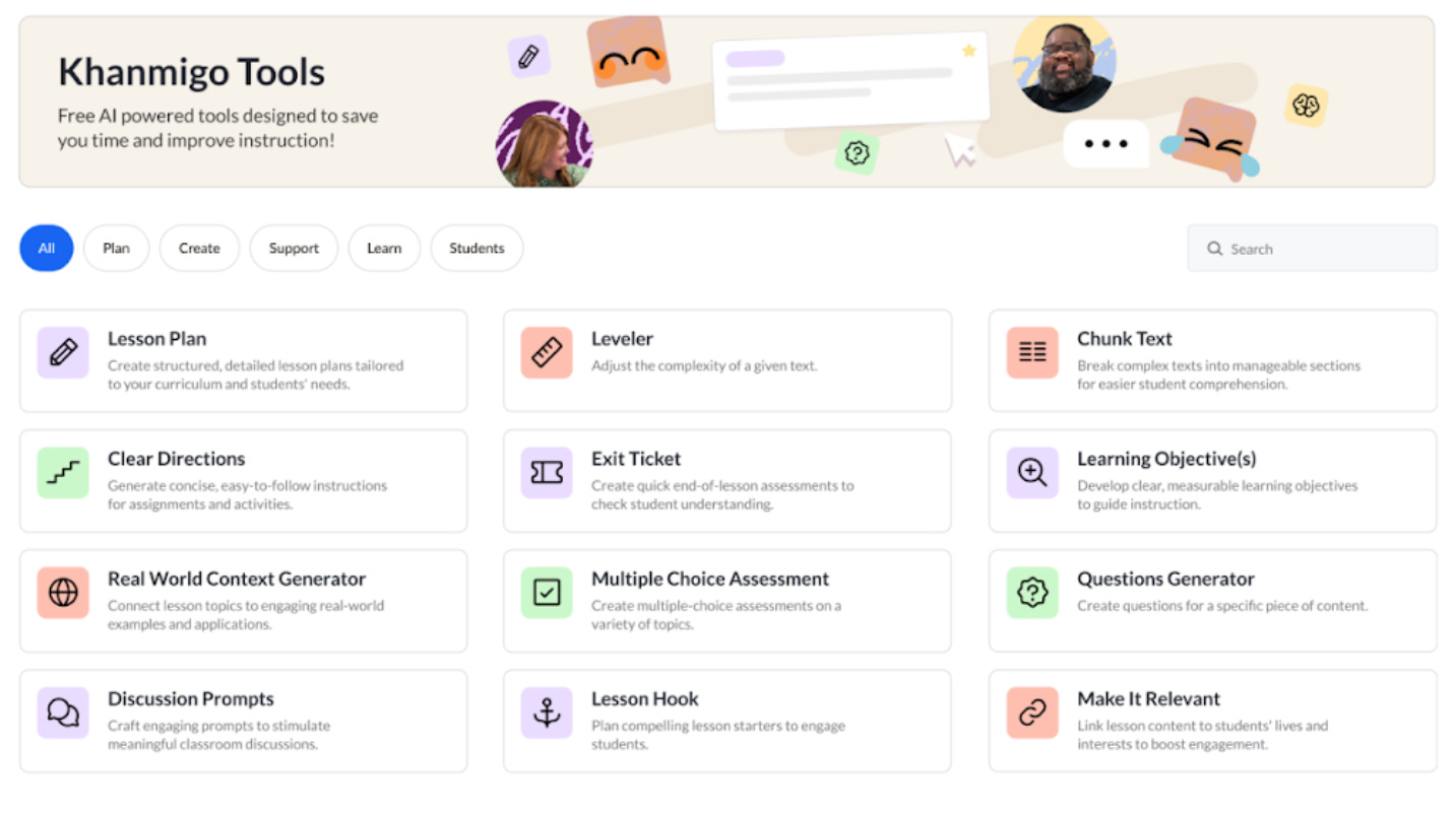 You can also frame these different functions as distinct tools, as pictured here with Khan Academy: