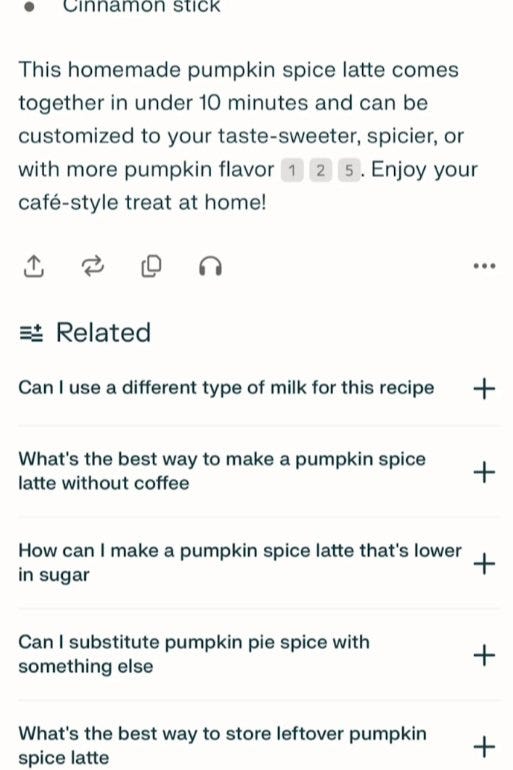 These suggestions keep the session going and help users discover new and useful information related to their original prompt that they may not have initially considered. This is a particularly notable feature of Perplexity that other general-purpose bots tend to lack. Perplexity generates related questions that may be helpful to the user’s original prompt, unleashing valuable knowledge: