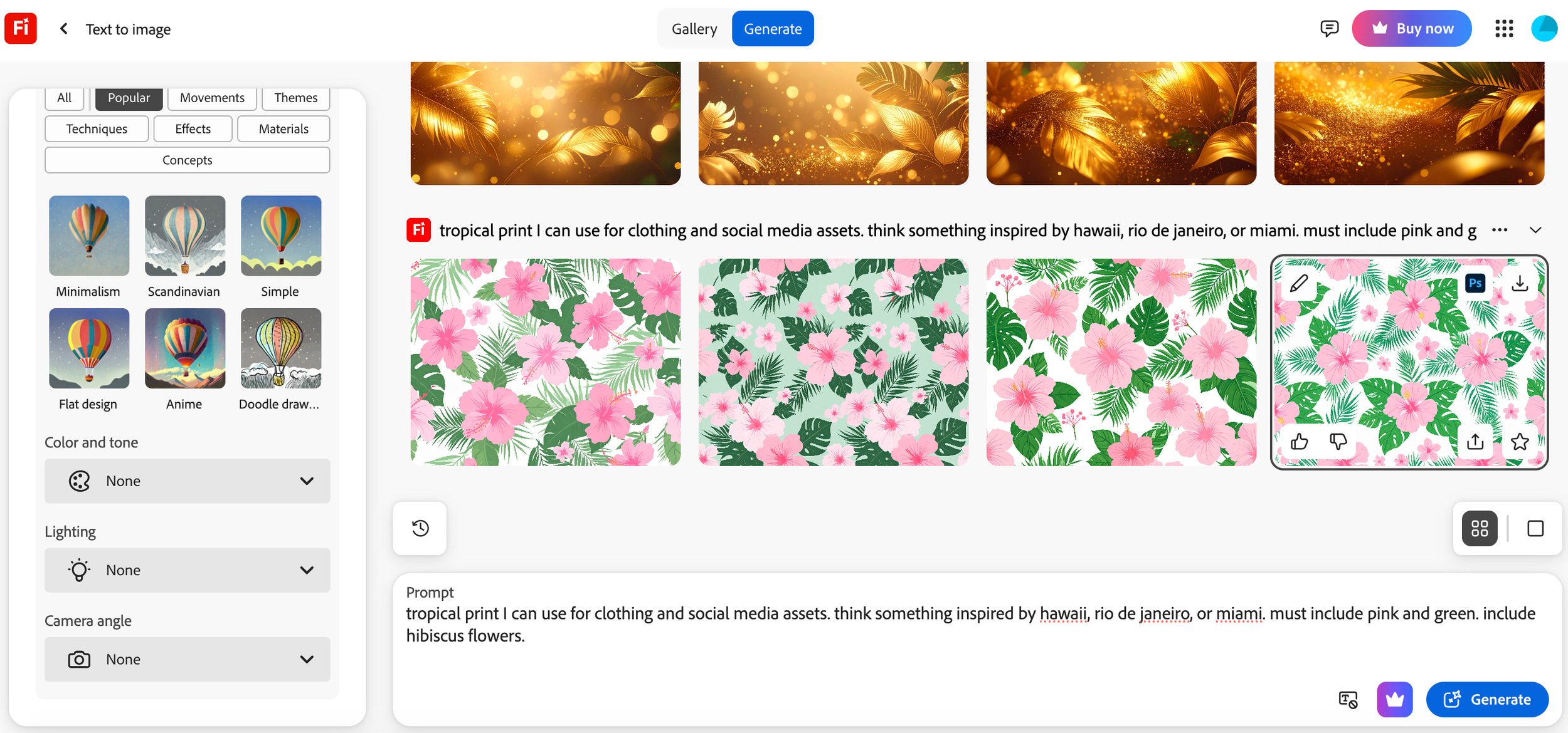Not erasing the prompt from the text box after its submission can make it easier for users to tweak or regenerate individual parts of a prompt or result. Adobe Firefly retains the user’s prompt in the text box even after the image has finished generating: